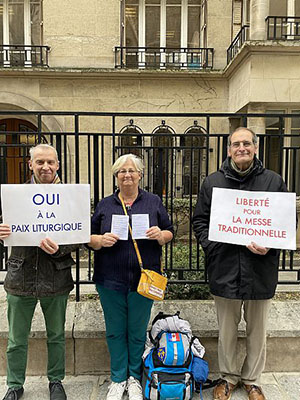Echoes of the vigils: a passer-by stops: “You are right to ask that the traditional liturgy be maintained in Paris. I am a faithful of Rambouillet, a community which was granted one Sunday Mass a month almost 15 years ago and was promised that, after a loyal period of observation in order to be able to measure the engagement and regularity of our group, we would be granted the celebration of Sunday Mass more regularly, but, much to my deep regret, I believe that we have been completely deceived! And I can tell you that, on the fifteenth, after our first request, the diocese did not grant us other Sunday celebrations. I know that the young faithful are considering launching a regular Mass in front of the church and many of us encourage them to act in this way. So “bravo” for your constancy, especially in these days when it is so very cold “Christus Imperat!”