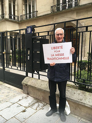 ¿Es Mons. Ulrich uno de estos «fieros obispos bergoglianos»? En cualquier caso, le pedimos que muestre benignidad y nos devuelva las celebraciones que nos quitó su predecesor, y lo hacemos rezando el rosario frente a la oficina del arzobispado, 10, rue du Cloître-Notre-Dame, de lunes a viernes, de 13 a 13:30 horas, en Saint-Georges de La Villette, 114 av. Simón Bolívar, los miércoles a las 17 horas, y delante de Notre-Dame du Travail, 59, rue Vercingétorix, los domingos a las 18.15 horas.